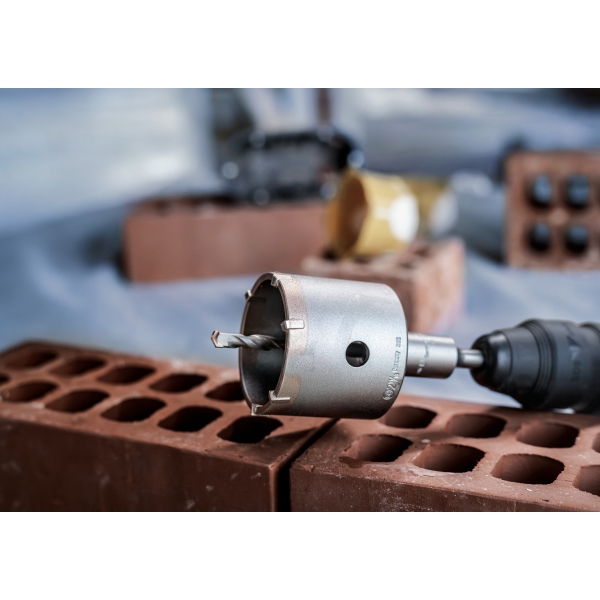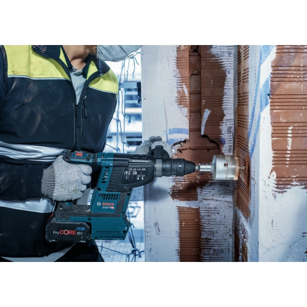 La broca sacanúcleos PRO SDS plus-5 utiliza dientes de carburo resistentes para garantizar un corte excepcional y una larga vida útil. Los dientes son asimétricos y se adaptan al diámetro de la broca, lo que permite realizar orificios precisos para cajas de interruptores y tuberías con mayor eficiencia.