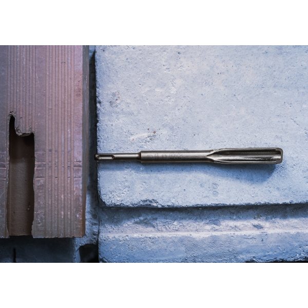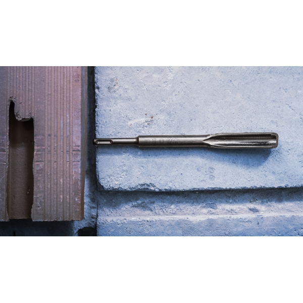 Diseñamos el cincel PRO SDS plus para electricistas, decoradores de interiores y fontaneros que necesitan crear canales limpios en paredes de ladrillo y hormigón. Su diseño hueco permite crear canales con precisión y facilidad. Se puede usar con un taladro SDS plus.