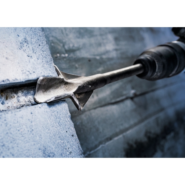 Diseñamos el cincel PRO SDS plus para electricistas, decoradores de interiores y fontaneros que necesitan realizar ranuras limpias y precisas en paredes de ladrillo y hormigón. El diseño de ala del cincel permite modificar la profundidad de la ranura ajustando el ángulo de trabajo. Puede utilizar el cincel con un taladro SDS plus.