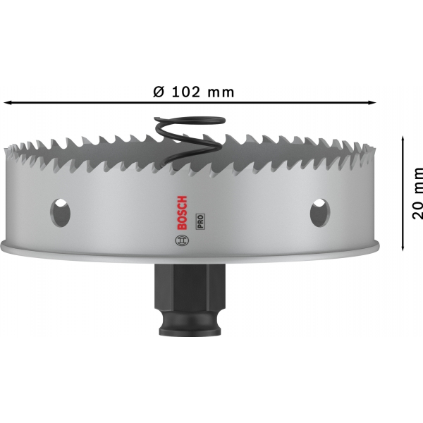 Diseñamos la broca corona PRO para chapa metálica para profesionales que necesitan procesar metal. Sus dientes están hechos de acero rápido (HSS) con un 8 % de cobalto, lo que los hace afilados y duraderos. Cuenta con un cuerpo resistente y un práctico resorte de liberación que facilita la eliminación de obstrucciones de material.