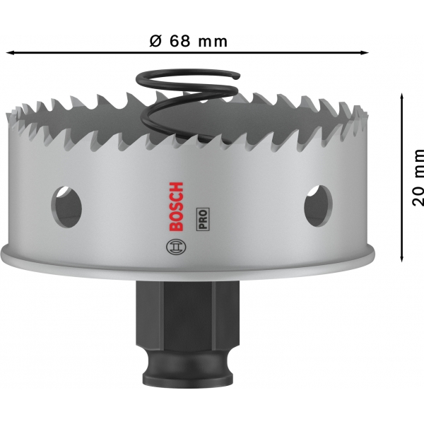 Diseñamos la broca corona PRO para chapa metálica para profesionales que necesitan procesar metal. Sus dientes están hechos de acero rápido (HSS) con un 8 % de cobalto, lo que los hace afilados y duraderos. Cuenta con un cuerpo resistente y un práctico resorte de liberación que facilita la eliminación de obstrucciones de material.