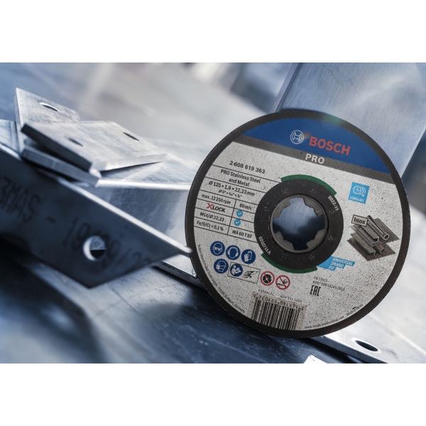 Con su grosor de 1,6 mm, el disco de corte PRO para acero inoxidable y metal es una excelente opción si busca un buen equilibrio entre durabilidad y velocidad. Utilizamos granos de óxido de aluminio de primera calidad para garantizar su resistencia y durabilidad. Combinamos el grano con rellenos y aditivos funcionales para reducir la acumulación de calor. Una malla de fibra de vidrio de alta calidad refuerza el disco, lo que lo hace más seguro de usar. Además, está fabricado sin hierro. Por eso, no tendrá que preocuparse por la oxidación en su pieza de trabajo si solo corta acero inoxidable.