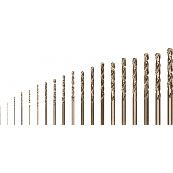 inglésJuego de 19 brocas helicoidales HSS-Co de acero inoxidable PRO