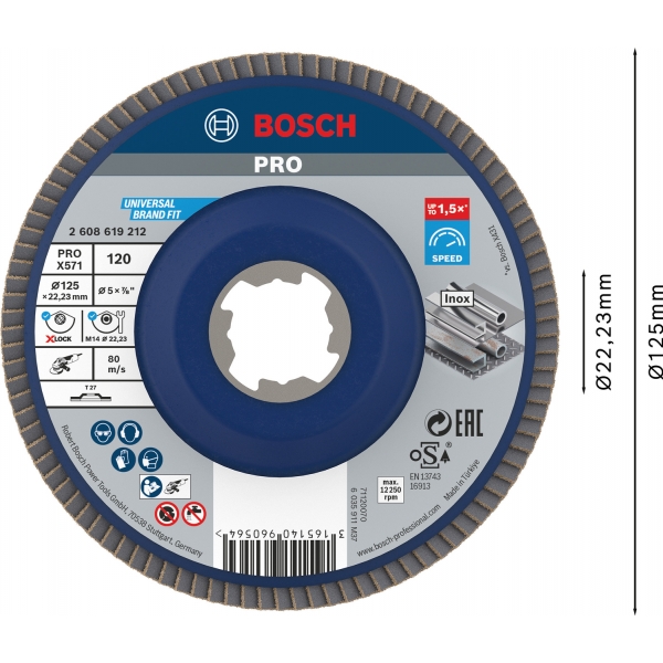 Bosch - PRO Steel and Stainless Steel X571 - Disco laminar,perfil recto, 125x22,2 mm, granulación 80Productos con precios próximos: