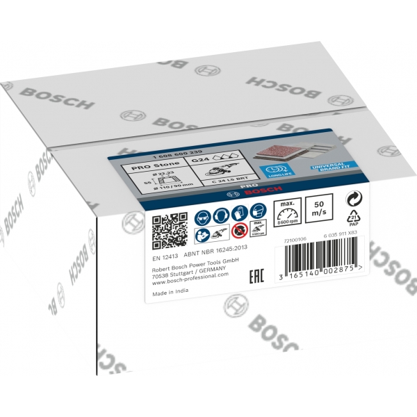 PRO Stone es una muela abrasiva de larga duración para canteros que necesitan desbastar, alisar y pulir piedra y hormigón. Combina granos de óxido de aluminio de alta calidad y una fuerte aglomerante de resina sintética para mayor resistencia y durabilidad. Para obtener los mejores resultados, se recomienda usarla para desbaste grueso con su amoladora de banco a una velocidad máxima de 8500 rpm.