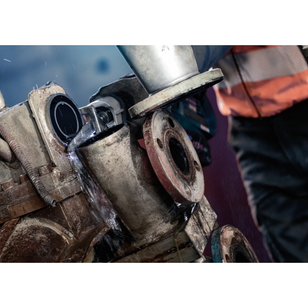 Combina dientes duros y cuerpo flexible utilizando la técnica de soldadura Bimetálica.