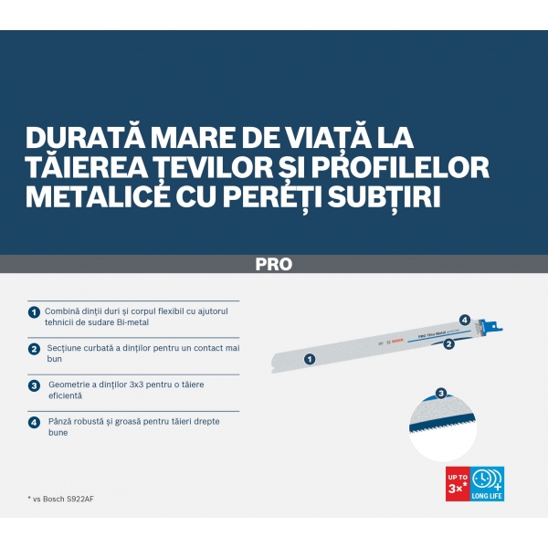 Hasta 3 veces más duradera que la hoja de sierra Bosch S922AF