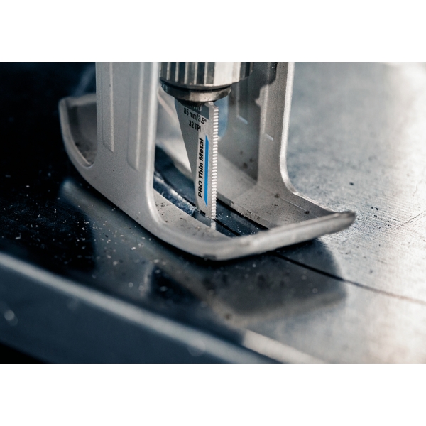 La hoja PRO Thin Metal S325GF cuenta con una avanzada construcción bimetálica, lo que significa que sus dientes están hechos de acero rápido endurecido (HSS), lo que garantiza una larga vida útil incluso al cortar chapa de acero. Con la misma eficacia al cortar metales no ferrosos como chapa de cobre, esta hoja es la mejor opción para instalaciones de calefacción, ventilación y aire acondicionado.