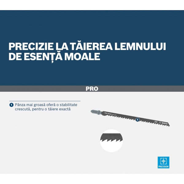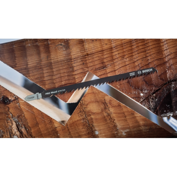 Para lograr cortes rápidos y rectos en piezas gruesas de madera blanda, necesita una hoja con alta precisión angular. La hoja debe ser más gruesa, más larga y con dientes fuertes y afilados. La hoja de sierra de calar PRO Wood Precise T344DP tiene todas las características que necesita para su trabajo.