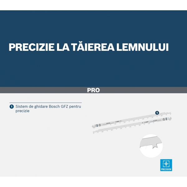 Sistema de guiado Bosch GFZ para mayor precisión.