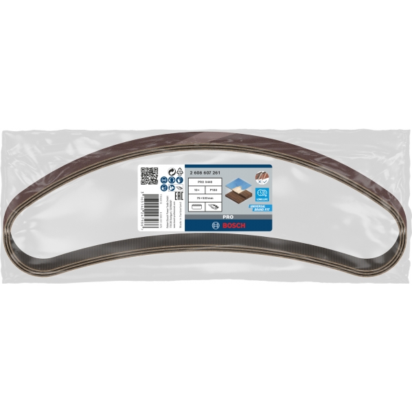 Bosch - PRO X440 - Juego de cintas de lijado 75x533mm, granulación 100, 10 piezas
