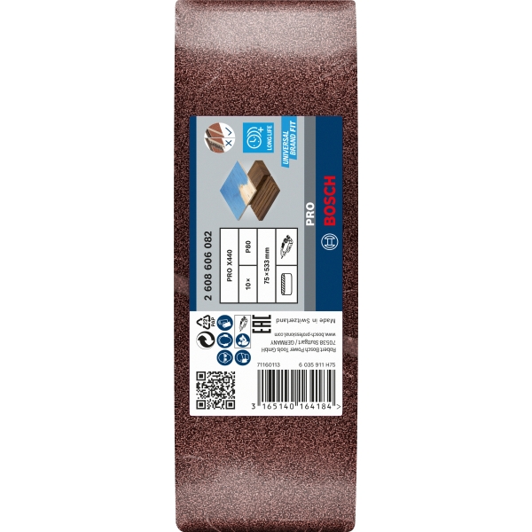 Bosch - PRO X440 - Juego de cintas de lijado 75x533mm, granulación 40, 10 piezas