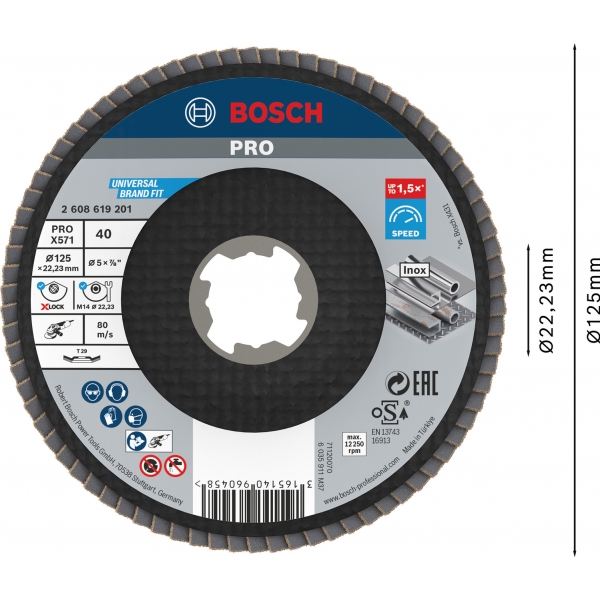 Bosch - PRO X571 - Disco laminar,perfil recto, 115x22,2 mm, granulación 40Productos similares: