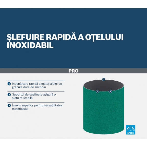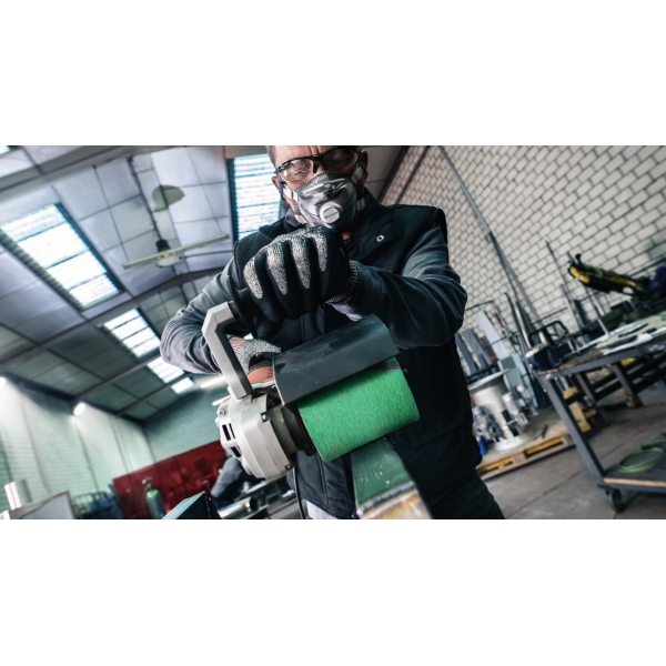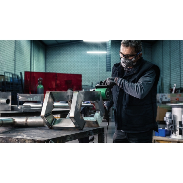 La PRO Y580 utiliza granos de zirconio duros y afilados para eliminar material rápidamente, incluso al trabajar con acero endurecido. El recubrimiento permite lijar tanto acero inoxidable como acero dulce con la misma eficiencia, mientras que el material de soporte garantiza un rendimiento estable.