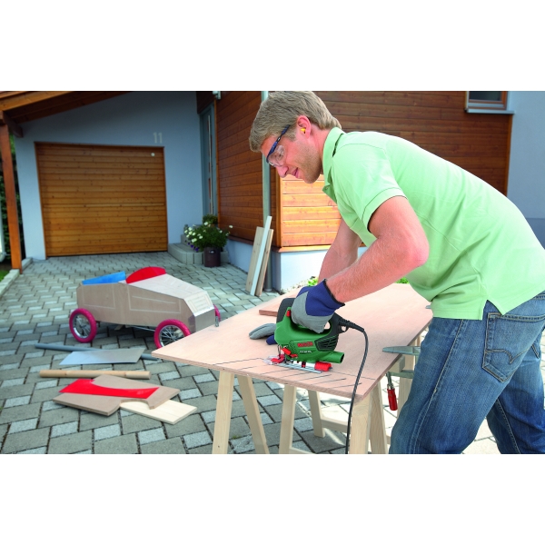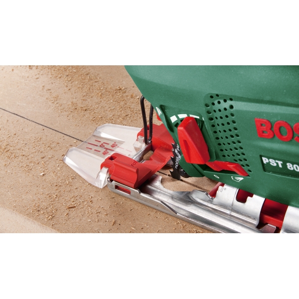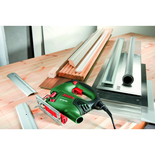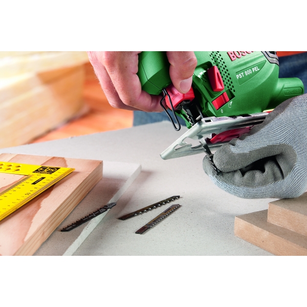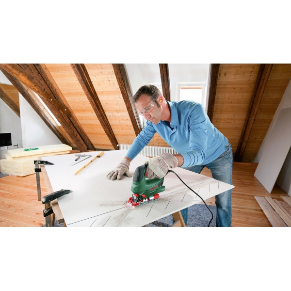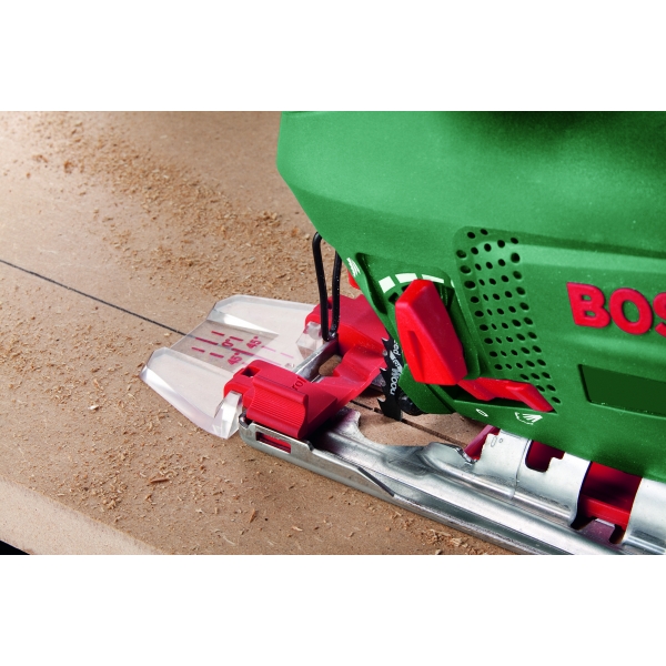 Precisión en el procesamiento de cualquier material debido al sistema electrónico de Bosch, verificado con éxito en la práctica: el ajuste del número de carreras a través del interruptor de botón para facilitar el arranque de la sierra y el trabajo adaptado a la estructura del material.