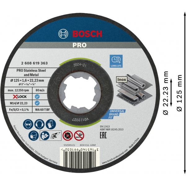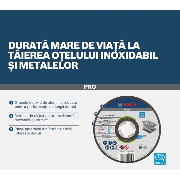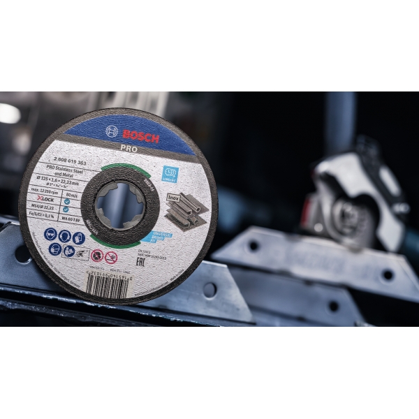 Con su grosor de 1,6 mm, el disco de corte PRO para acero inoxidable y metal es una excelente opción si busca un buen equilibrio entre durabilidad y velocidad. Utilizamos granos de óxido de aluminio de primera calidad para garantizar su resistencia y durabilidad. Combinamos el grano con rellenos y aditivos funcionales para reducir la acumulación de calor. Una malla de fibra de vidrio de alta calidad refuerza el disco, lo que lo hace más seguro de usar. Además, está fabricado sin hierro. Por eso, no tendrá que preocuparse por la oxidación en su pieza de trabajo si solo corta acero inoxidable.