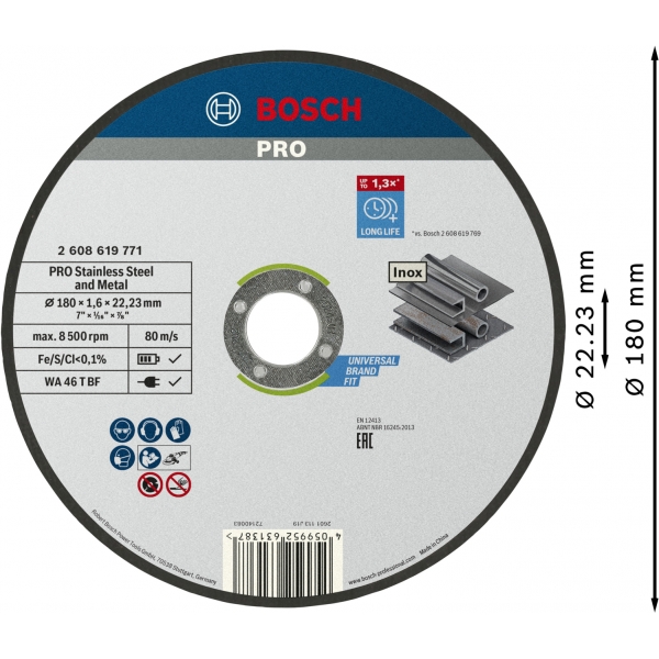 Bosch - Standard for Inox - Disco de corteacero inoxidable, 180x22,2x1.6mm, 1 cada