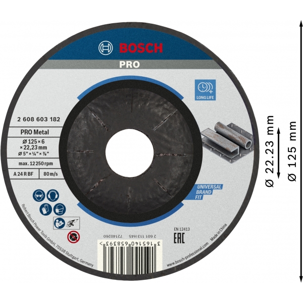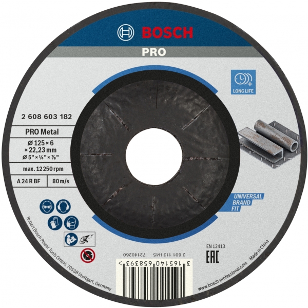 El duradero disco de desbaste PRO Metal utiliza grano de óxido de aluminio de alta calidad para desbastar eficazmente metal y acero. Combinamos el grano con materiales de relleno funcionales y los incorporamos en una matriz de resina fenólica para mayor resistencia, resistencia al calor y un rendimiento estable. Una malla de fibra de vidrio mecanizada con precisión refuerza el disco para mayor seguridad.