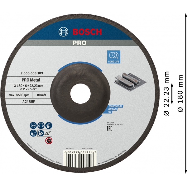 El duradero disco de desbaste PRO Metal utiliza grano de óxido de aluminio de alta calidad para desbastar eficazmente metal y acero. Combinamos el grano con materiales de relleno funcionales y los incorporamos en una matriz de resina fenólica para mayor resistencia, resistencia al calor y un rendimiento estable. Una malla de fibra de vidrio mecanizada con precisión refuerza el disco para mayor seguridad.