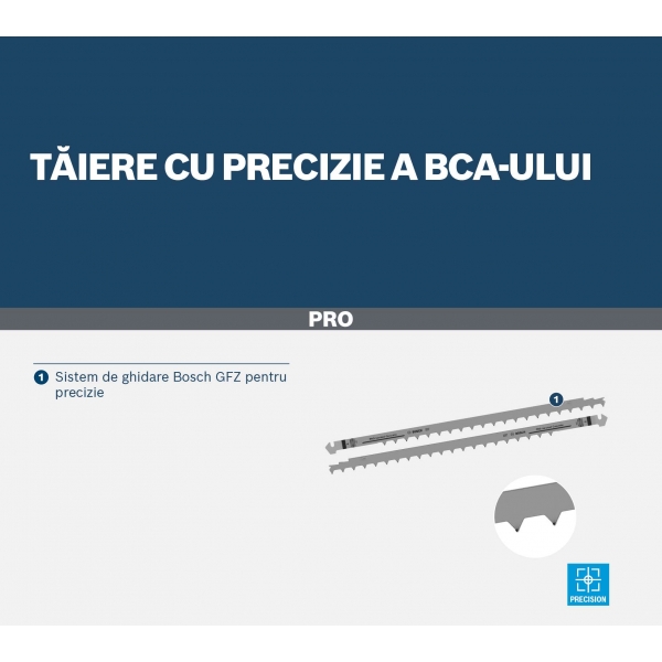 Aunque sus dientes de carburo hacen el trabajo pesado, la ventaja añadida de la hoja PRO para hormigón celular TF350NHM es el sistema de guía Bosch GFZ, que garantiza un corte preciso en todo momento. No es apta para ladrillos silicocalcáreos ni hormigón macizo.