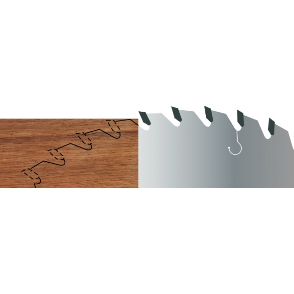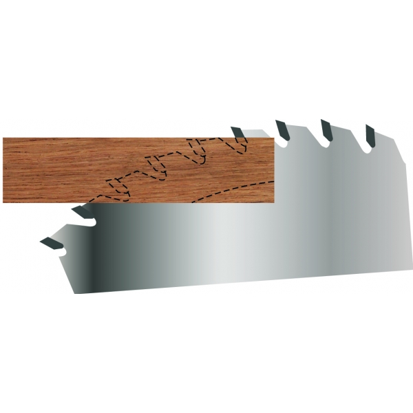 Las puntas de los dientes se voltean alternativamente hacia la derecha y hacia la izquierda.