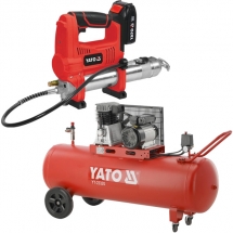 | Juego de entrega | 1 x Yato - YT-07020 - Engrasadora con 1 batería, Li-Ion, 18 V, 3 Ah, 620 bar 1 batería, Li-Ion, 18 V, 3 Ah Cargador 1 x Yato - YT-23320 - Compresor, con aceite, 2200 W, 200 l, 360 l/min, 10 bar |