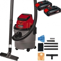 | Juego de entrega | 1 x Einhell - TC-VC 18/15 Li S PXC - Aspiradora sin baterías ni cargador, Li-Ion, 18 V, - Ah, 80 mbar, accesorios Manguera con tubo alargador de tres piezas, 1,5 m Boquilla combinada para alfombras Boquilla para grietas Filtro de espuma Bolsa de filtro Bolsa recolectora de suciedad 1 x Einhell - PXC-Twinpack CB - Juego de 2 baterías, Li-Ion, 18 V, 2,5 Ah, indicador de nivel de carga |