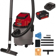 | Juego de entrega | 1 x Einhell - TC-VC 18/15 Li S PXC - Aspiradora sin baterías ni cargador, Li-Ion, 18 V, - Ah, 80 mbar, accesorios Manguera con tubo alargador de tres piezas, 1,5 m Boquilla combinada para alfombras Boquilla para grietas Filtro de espuma Bolsa de filtro Bolsa recolectora de suciedad 1 x Einhell - PXC Plus - Batería, Li-Ion, 18 V, 4 Ah, indicador de nivel de carga 1 x Einhell - PXC - Cargador de batería de iones de litio, 18 V, carga rápida |