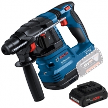 Juego de entrega | 1 x Bosch - GBH 18V-22 - Martillo perforador SDS-Plus sin baterías ni cargador, Li-Ion, 18 V, - Ah, 1,9 J Paño de limpieza Limitador de profundidad 1 x Bosch - ProCORE - Batería, Li-Ion, 18 V, 4 Ah, indicador de nivel de carga |