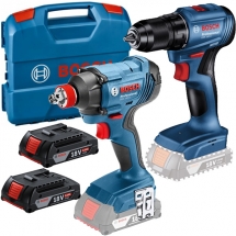 Juego de entrega | 1 x Bosch - GSR 185-LI - Taladro atornillador inalámbrico sin batería ni cargador, Li-Ion, 18 V, - Ah, 50 Nm 1 x Bosch - GDX 180-LI - Atornillador de impacto sin baterías ni cargador, Li-Ion, 18 V, - Ah, cuadrado de 1/2 pulgada y hexágono interior de 1/4 pulgada, 180 Nm, M6-M14 2 x Bosch - Batería, 18 V, 2 Ah 1 x Bosch - Cargador 1 x Bosch - Estuche de plástico |