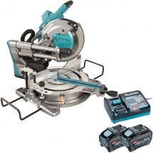 Juego de entrega | 1 x Makita - LS004GZ01 XGT - Sierra circular estacionaria sin baterías ni cargador, Li-Ion, 40 V, - Ah, 260 mm Cuchilla Efficut, 260x30x45T mm Bolsa de colección Tornillo de banco vertical Unidad inalámbrica cuadrado Llave Allen de 6 mm 1 x Makita - PSK XGT - Juego de 2 baterías y cargador, Li-Ion, 40 V, 5 Ah, carga rápida |