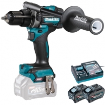 Juego de entrega | 1 x Makita - HP001GZ XGT - Taladro atornillador de impacto sin baterías ni cargador, Li-Ion, 40 V, - Ah, 140 Nm, motor sin escobillas, iluminación LED 1 x Makita - PSK XGT - Juego de 2 baterías y cargador, Li-Ion, 40 V, 5 Ah, carga rápida |
