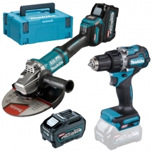 Juego de entrega | 1 x Makita - GA038GT201 XGT - Amoladora angular con 2 baterías, Li-Ion, 40 V, 5 Ah, 230 mm, estuche especial 2 baterías de iones de litio, 40 V, 5 Ah Cargador rápido DC40RA Llave inglesa Guardabarros Estuche de transporte y almacenamiento tipo Makpac 1 x Makita - DF002GZ XGT - Taladro y atornillador sin baterías ni cargador, Li-Ion, 40 V, - Ah, 64 Nm |