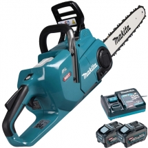 Juego de entrega | 1 x Makita - UC015GZ XGT - Motosierra sin baterías ni cargador, Li-Ion, 40 V, - Ah, 35 cm, 25,5 m/s Protección de la cuchilla 1 x Makita - PSK XGT - Juego de 2 baterías y cargador, Li-Ion, 40 V, 5 Ah, carga rápida |