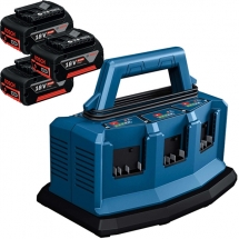 Juego de entrega | 3 x Bosch - GBA 18 V - Batería, Li-Ion, 18 V, 4 Ah, indicador de nivel de carga 1 x Bosch - GAL 18V6-80 - Cargador de batería de iones de litio, 14,4-18 V |