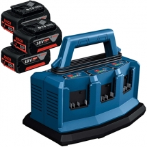 Juego de entrega | 3 x Bosch - GBA - Batería, Li-Ion, 18 V, 5 Ah, indicador de nivel de carga 1 x Bosch - GAL 18V6-80 - Cargador de batería de iones de litio, 14,4-18 V |