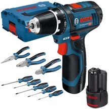 | Juego de entrega | Alicates universales, 190 mm Alicates de corte lateral, 160 mm Alicates de punta redonda, 200 mm Destornillador de punta plana, 0,6x3,5x75 mm Destornillador de punta plana, 1x4,5x100 mm Destornillador de punta plana, 1,2x6,5x125 mm Destornillador con perfil PH1, 100 mm Destornillador PH2, 125 mm 2 baterías, Li-Ion, 12 V, 2 Ah Cargador GAL 12V-20 | |