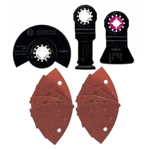 | Información adicional | El conjunto contiene: 1 x hoja de sierra segmentada BIM Wood and Metal, tipo ACZ 85 EB 1 x hoja de sierra BIM, con entrada directa en material de madera y metal, tipo AIZ 32 APB 1 x raspador HCS, tipo ATZ 52 SFC 10 x láminas abrasivas de madera y pintura |