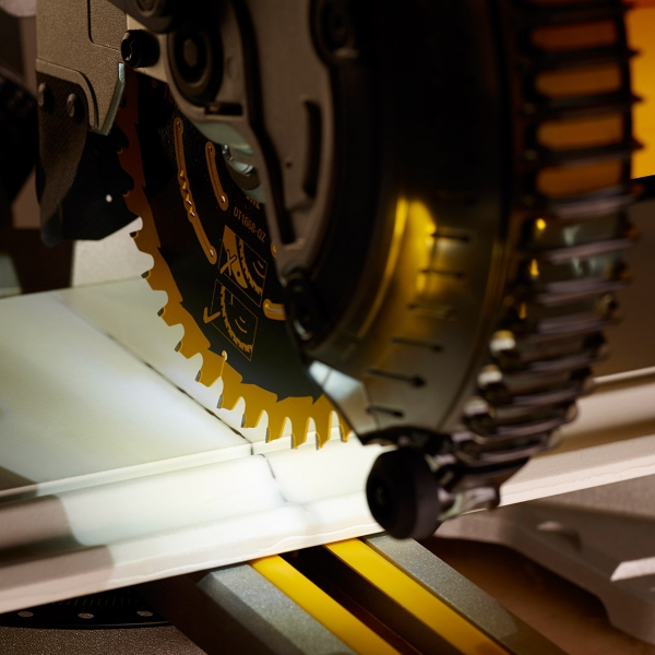 El indicador de corte de línea XPS Shadow garantiza una alineación precisa de la cuchilla mientras ilumina la pieza de trabajo para aumentar la productividad.