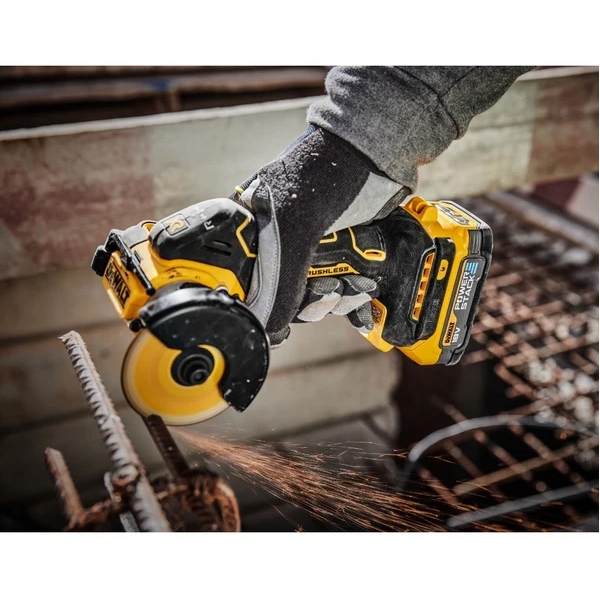 La posibilidad de girar la cuchilla hacia adelante o hacia atrás permite cambiar su dirección de forma rápida y sencilla, lo que permite al usuario desviar las chispas cuando trabaja en espacios reducidos.