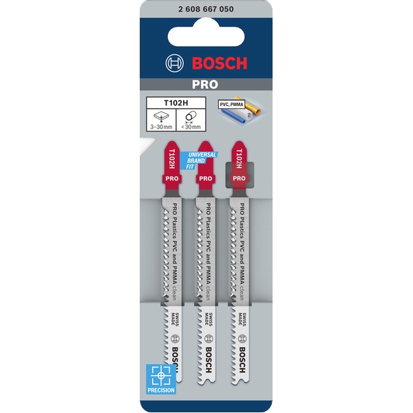 Bosch - PRO Plastics PVC and PMMA clean T102H - Juego de hojas de sierra pendular, varilla con un umbral de sujeción (T), 100 mm, plástico, corte re