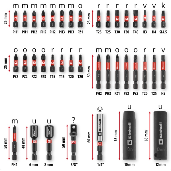 Einhell - M-CASE Impact Bit Set - Juegocabezas de tornillo, mixto, 38 piezas