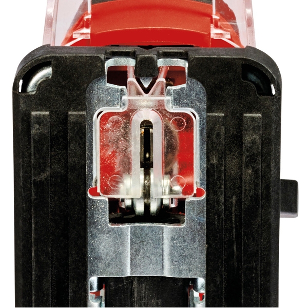 La acción de péndulo conmutable asegura un progreso rápido y la abrazadera tipo T permite cambios de hoja sin herramientas.