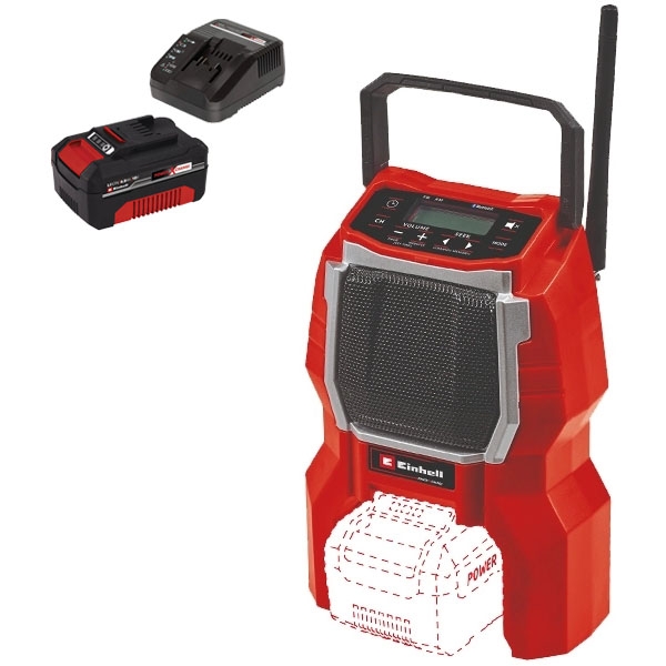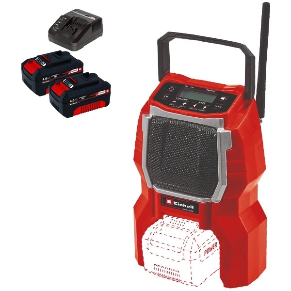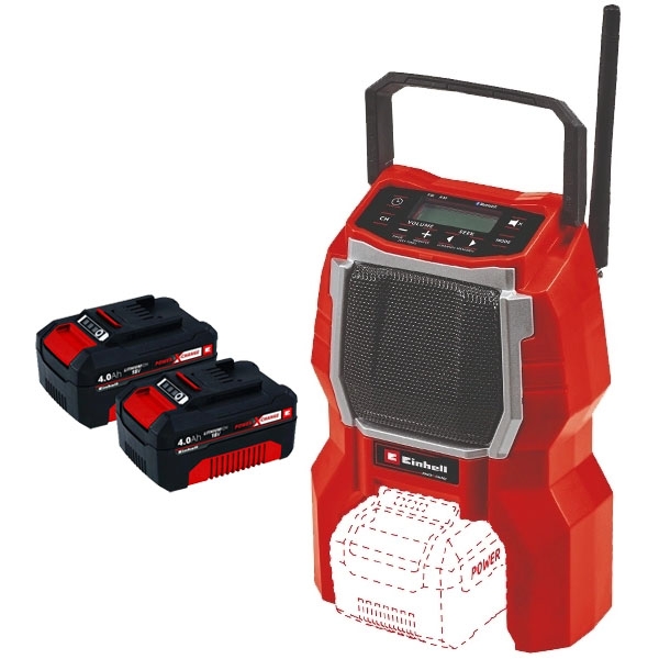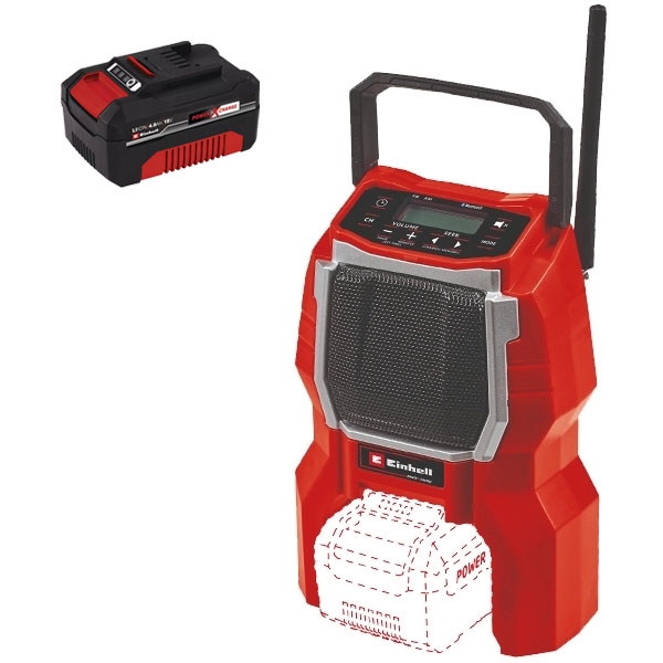 Einhell - TC-RA 18 Li BT PXC - Radio sin pilas ni cargador, 18 V, - Ah + Einhell - PXC Plus - Batería, Li-Ion, 18 V, 4 Ah, Indicador de nivel de carg