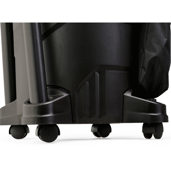 La movilidad está garantizada por las cuatro ruedas giratorias estables y el asa de transporte integrada .