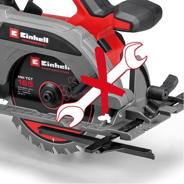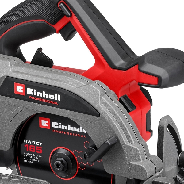 inglésLa sierra circular inalámbrica Einhell Professional TP-CS 18/165 Li BL - Solo es extremadamente compacta y fácil de usar, lo que permite un trabajo agradable en el taller y el jardín .