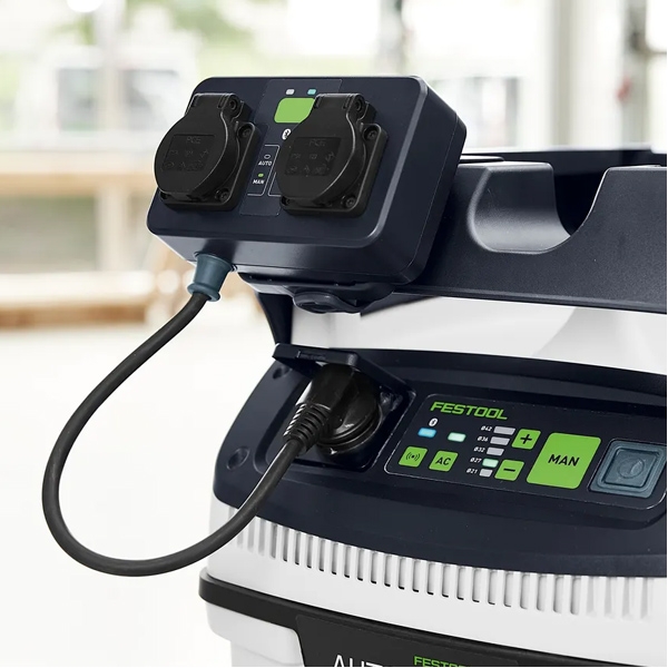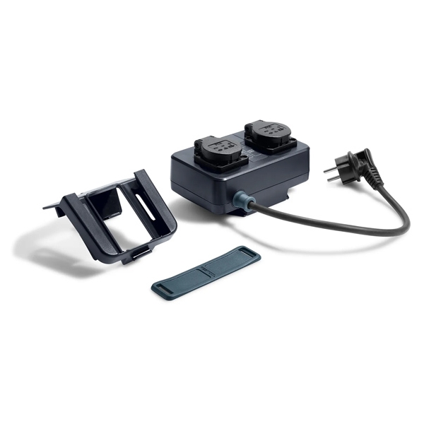 Este módulo independiente permite conectar dos enchufes a la aspiradora con un solo movimiento. Esto permite cambiar de encendido automático a corriente continua, por ejemplo, para conectar un cargador, sin necesidad de encender la aspiradora directamente.