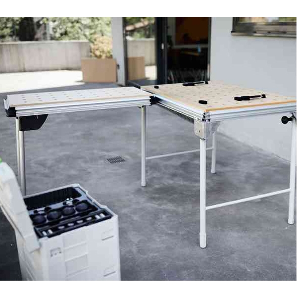 Superficie de trabajo que permite la extensión individual: el panel de aluminio y la placa perforada permiten agregar fácilmente varias mesas multifuncionales.