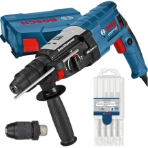 Bosch - GBH 2-26 DFR - Martillo perforador SDS-Plus, 800 W, 2.7 J, Mandril intercambiable, caja de plastico + Bosch - 2608579916 - Juego, 9 broca, 2 Cinceles, caja de metal