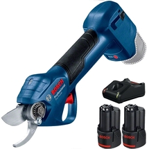 Bosch - Pro Pruner - Tijeras de jardín para ramas sin baterías y cargadores, Li-Ion, 12 V, - ah, 25 mm, Motor sin escobillas + Bosch - 1600A019R8 - Juego2 baterías si incarcator, Li-Ion, 12 V, 2 Ah